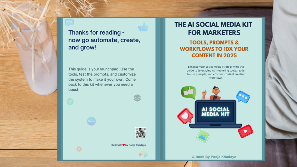 "The AI Social Media Kit for Marketers" by Pooja Khadaye is your plug-and-play playbook to create faster, plan smarter, and show up consistently—without burning out or building a team.